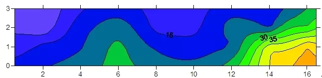 图1、 SCR进口流场测试(上图:甲侧;下图:乙侧;单位:m/s)