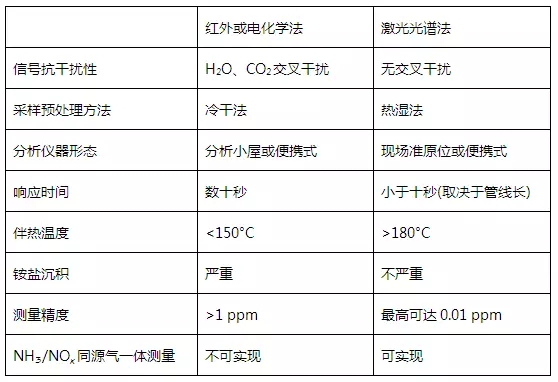表3、传统NOx仪表和激光光谱仪表的特点对比