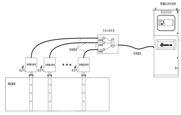 为了能够掌握每个催化剂模块的出口NOx和NH3浓度。SCR烟气脱硝系统通常约有数十个模块,因此需要测量数十个网格中心点的NOx和NH3浓度。常规的便携式烟气取样方法,由于人工网格法采样,完成脱硝反应器全截面的烟气分布测量预计需要数小时以上,并且由于测量时间过长,机组工况难以维持稳定,测量结果存在较大误差,再者烟气冷凝除水步骤容易造成铵盐堵塞。因此国内SCR烟气喷氨的优化调整工作尚未有较好方案。