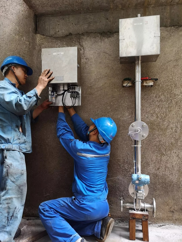 检测密度计失效的原因,使用内窥镜检查密度计内部,发现大量磨损痕迹。如需更换两台质量流量计需要26万元生产费用,经过对多厂调研,决定使用差压式流量计进行设备改造。