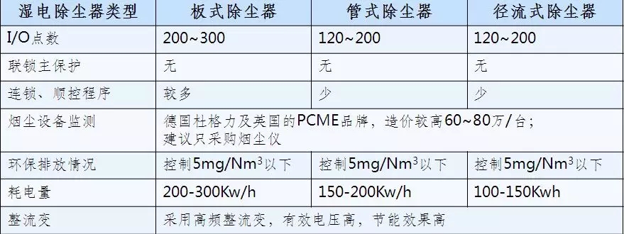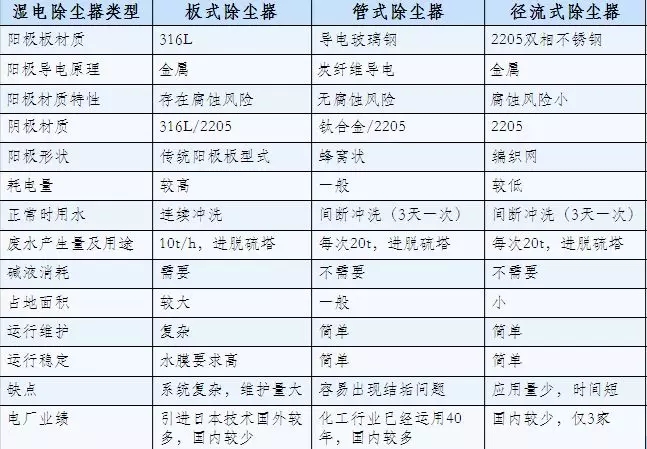 三种湿式电除尘类型综合比较制
