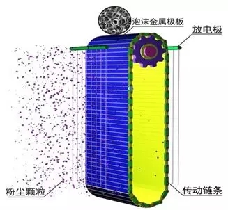 采用2205编织成网状阳极板作为收尘板,布置形式为卧式,烟气流为水平进水平出,与普通电除尘烟气平行与阳极板不同,烟气垂直与阳极板。间断冲洗阳极板和阴极线。